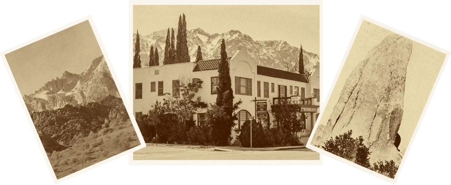 Welcome to Winnedumah, a historic retreat in the Owens Valley. Since 1925, this storied hotel has welcomed naturalists, filmmakers, climbers, and adventurers drawn to the rugged beauty of the Sierra. Nestled between towering granite peaks and vast desert landscapes, Winnedumah Hotel embodies the spirit of the American West—where history, adventure, and hospitality come together for a one-of-a-kind escape.